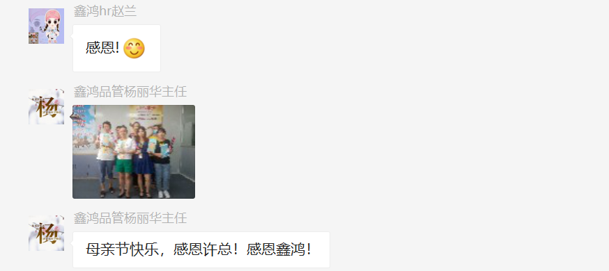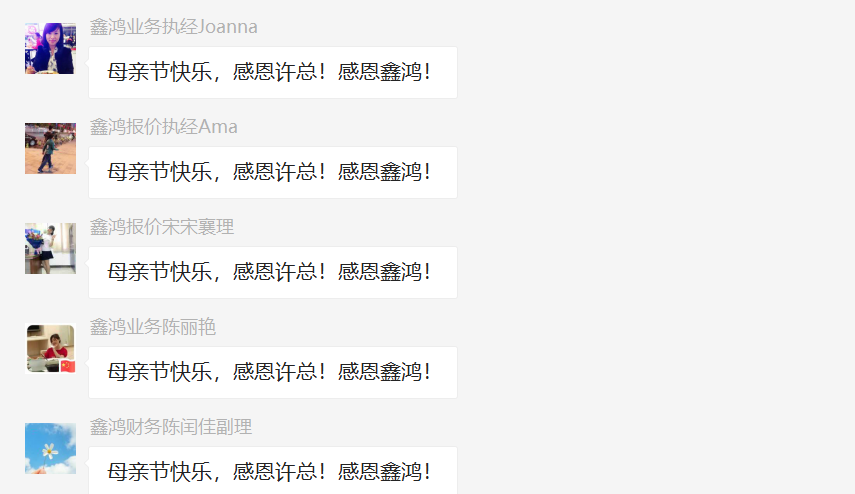 大家收到母親節禮物,都很開心,紛紛合影留念,并在公司微信群留言表達自己的歡喜之情,對公司的感恩之心。