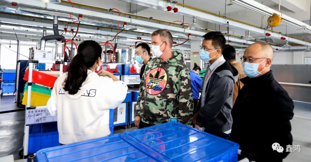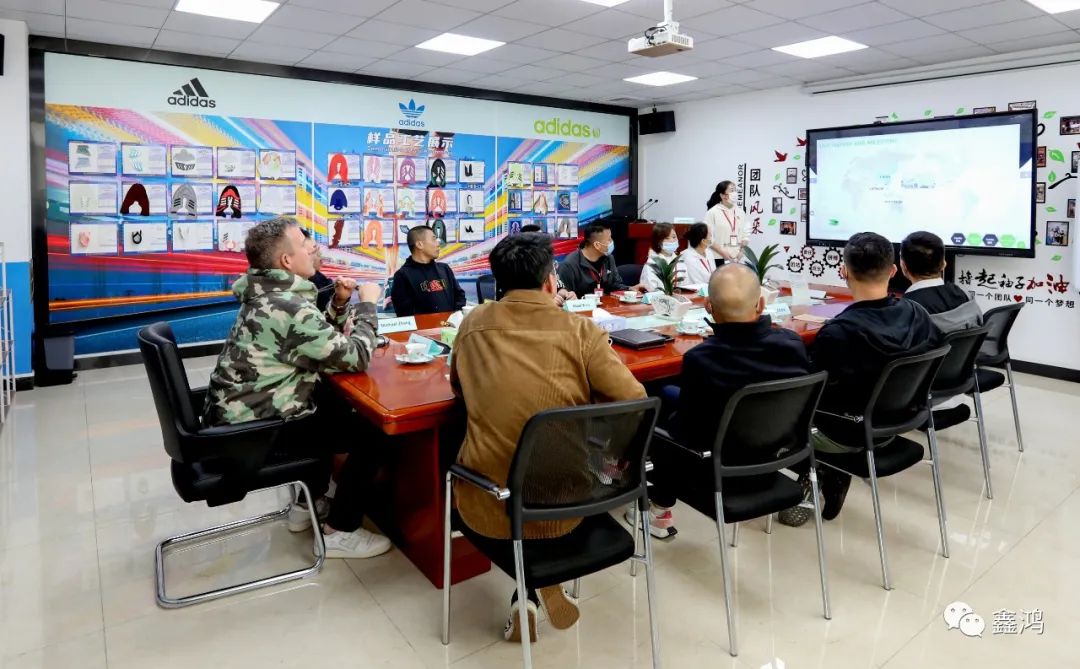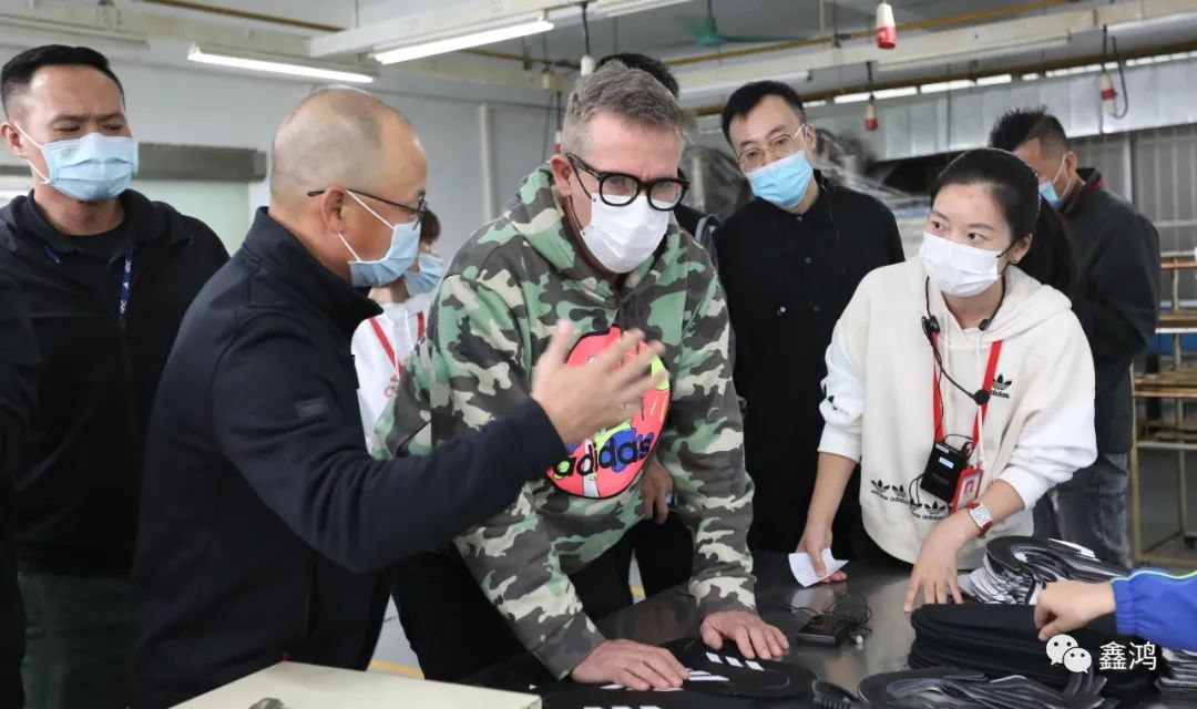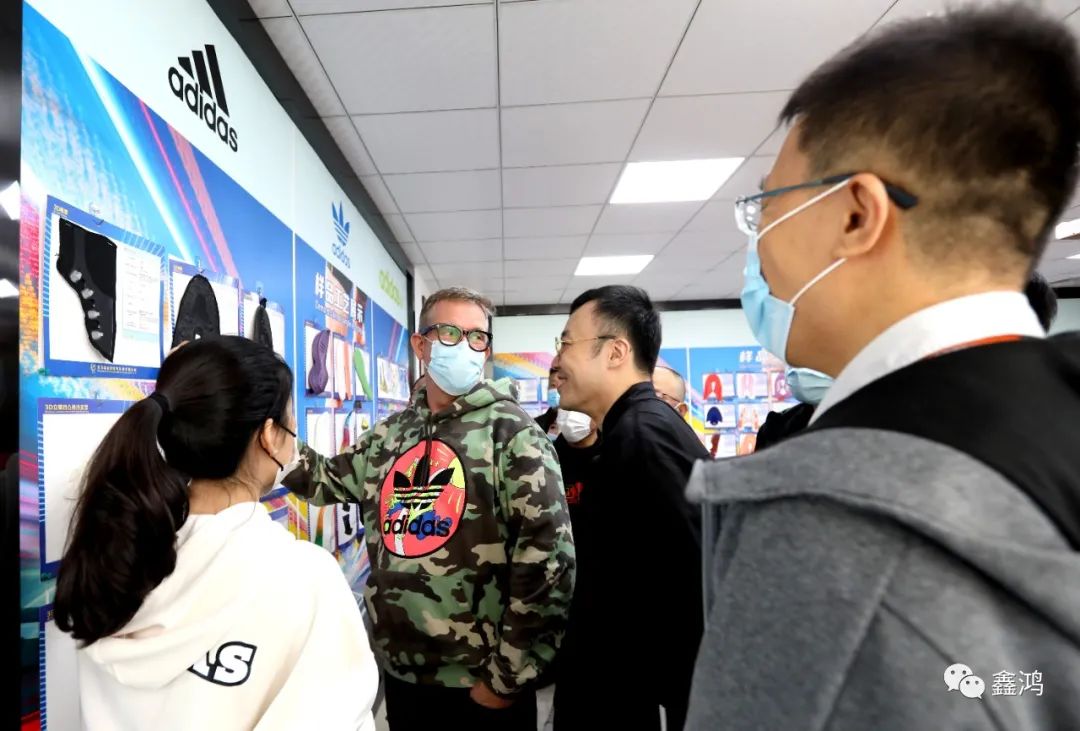 2021年11月22日下午1時許,adidas CCA大中華區資深副總裁Edwin Jonkers攜團隊Michael Zhang,Victor Zhang一行對鑫鴻公司總部進行參觀訪問,隨行人員還有adidas LO 總監Mickey Yang,寶成集團Adam Yu, David Zhang。鑫鴻公司總經理許翼峰代表公司對到訪客人表示熱忱的歡迎。客人聽取了公司的報告以及最新創研產品的介紹,在公司各部門主管的陪同下,客人們參觀了創研中心及生產車間,針對客人提出的各類問題,公司總經理和各部門主管均作出細致解答,豐富的專業知識和有素的工作能力,也為客人們留下了深刻印象。